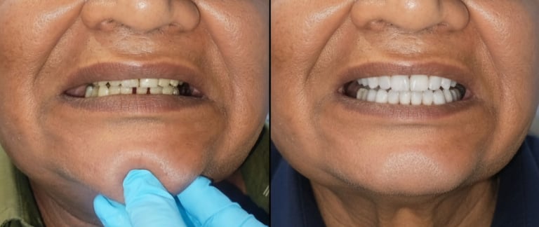 Smile makeover previews shown above are of real patients. Images are shared without revealing full facial identity to maintain patient privacy. Previews are indicative and final results may vary depending on oral health and treatment requirements.